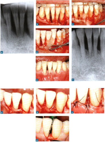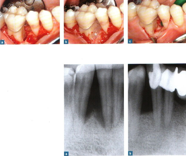 Ayrıca genel ve lokal dişeti abseleri oluşabilir. Bu sorunun tedavisinde dişetinin açılarak dişik kök yüzeyinin temizlenmesi, civardaki iltihaplı dokunun (granülanyon dokusu) temizlenmesi ve kliniğimizde uyguladığımız yöntemle, o boşluklara yapay kemik + minematriks proteini (Emdogain (R) ) uygulaması yapılarak 6-8 ay sonra operasyon bölgelerinde yeniden alveol kemiği oluşumu sağlanmakta ve bu yolla belkide çekilecek bir diş ağızda tutulmaktadır.